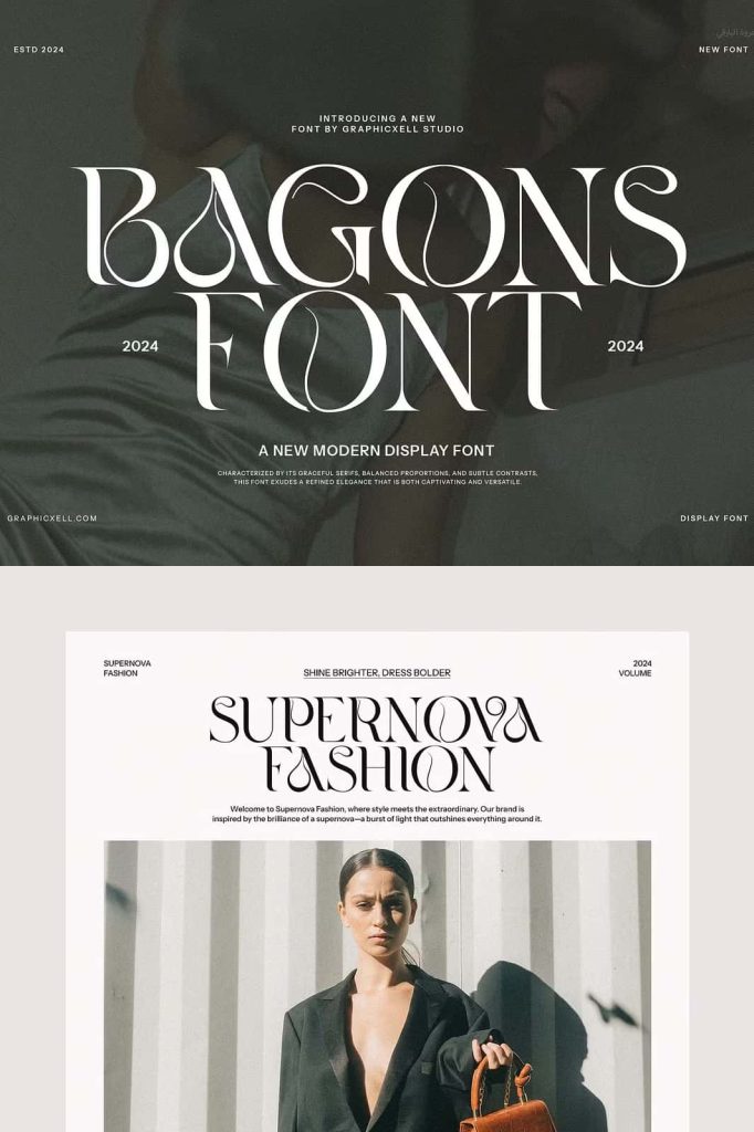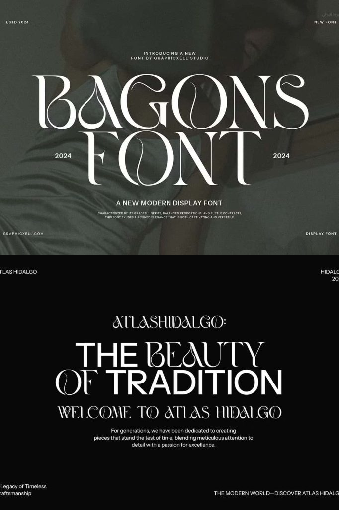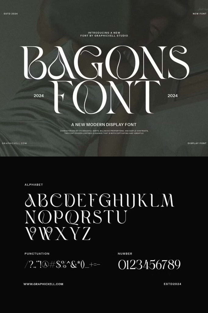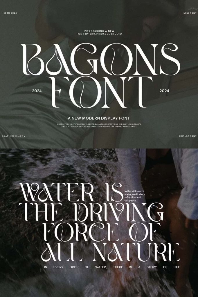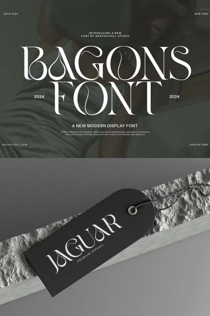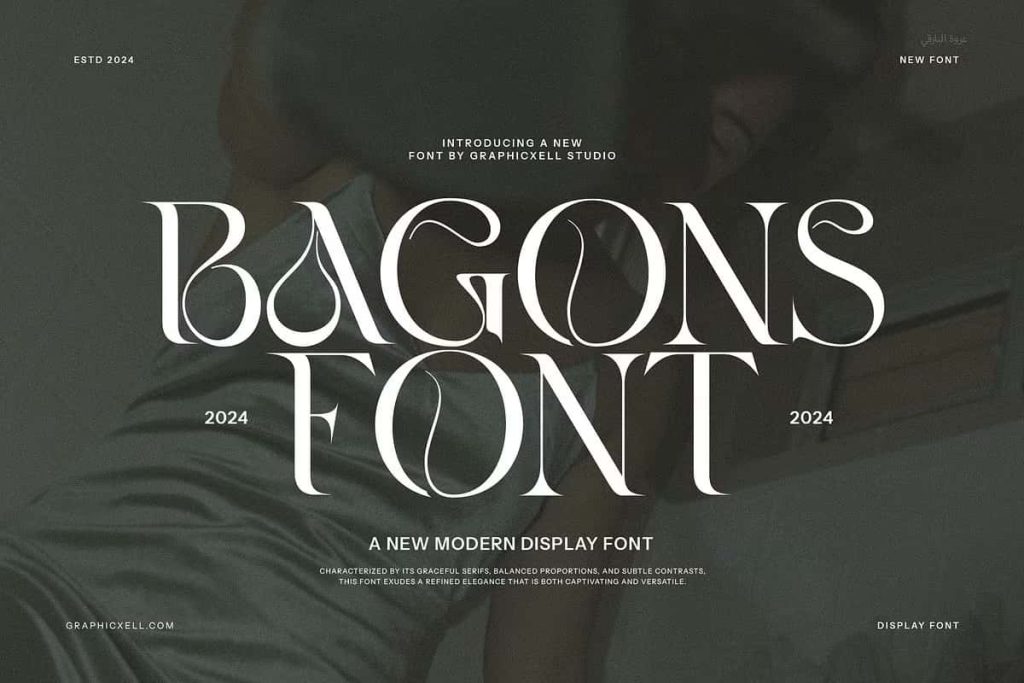 Bagons Elegant Serif is a modern serif typeface that offers a fashionable touch. It doesn’t only look sophisticated but also charming. What makes it interesting is the delicate curves, bringing an elegant style. The classy ligature also becomes one of its characteristics and appeals. With calligraphic influences, this font gives a contemporary feeling. So, it is perfect for various designs such as beauty designs, elegant crafting,