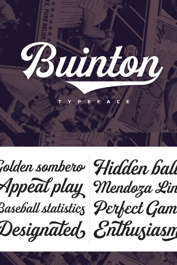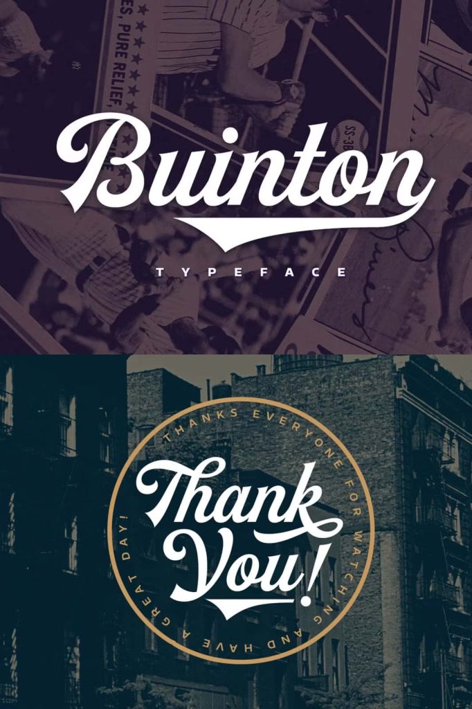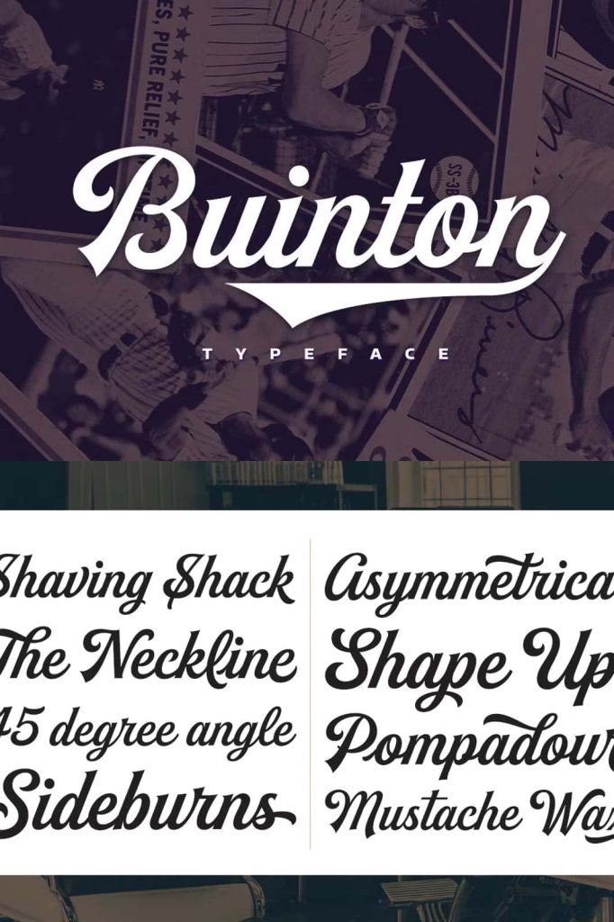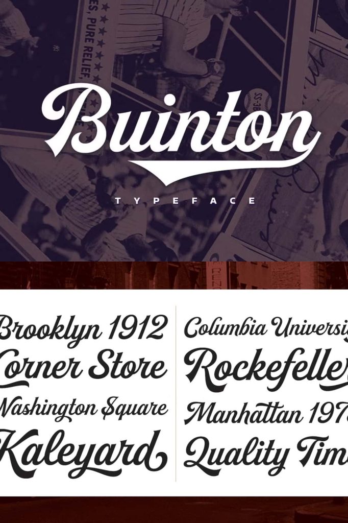 Buinton is a script typeface with noble and vintage looks. It has serifs at the beginnings of the strokes, swash capitals and formal design.