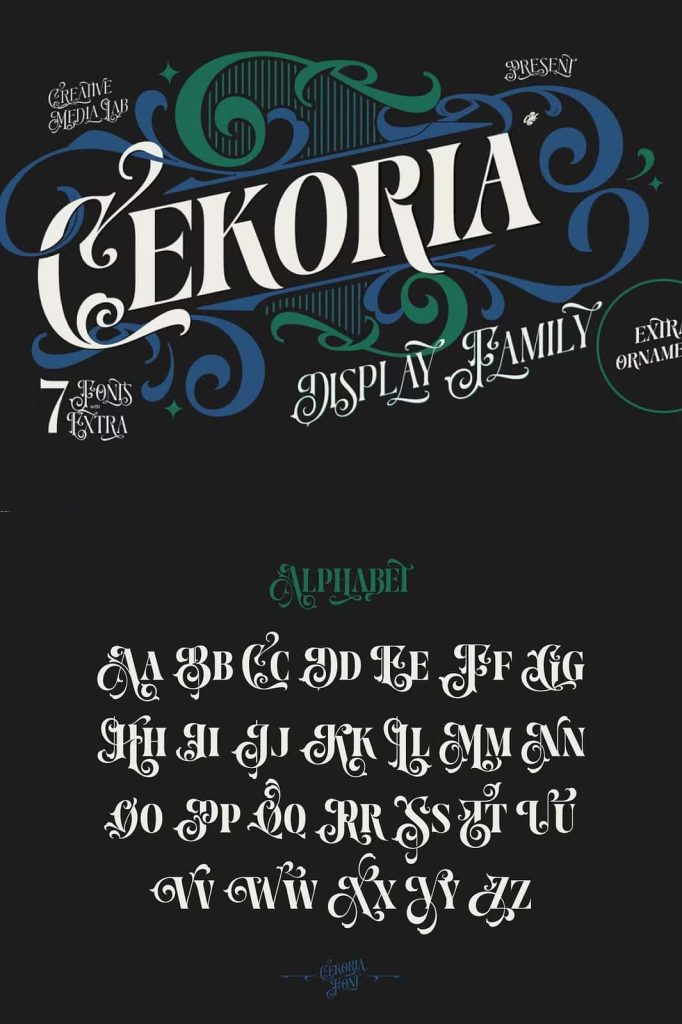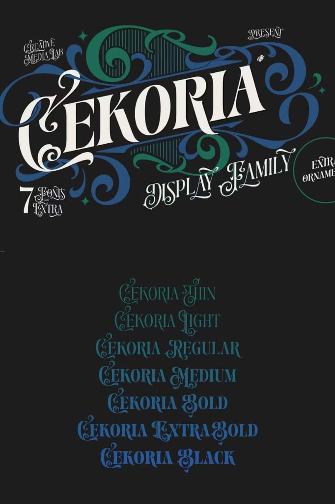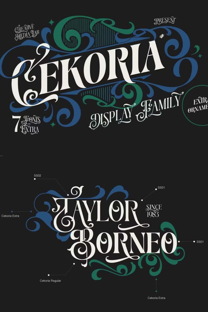Cekoria – Decorative Display FamilyleastedDecember 31, 2024Fonts Introducing Cekoria, a decorative display font inspired by classic vintage signage art. Download