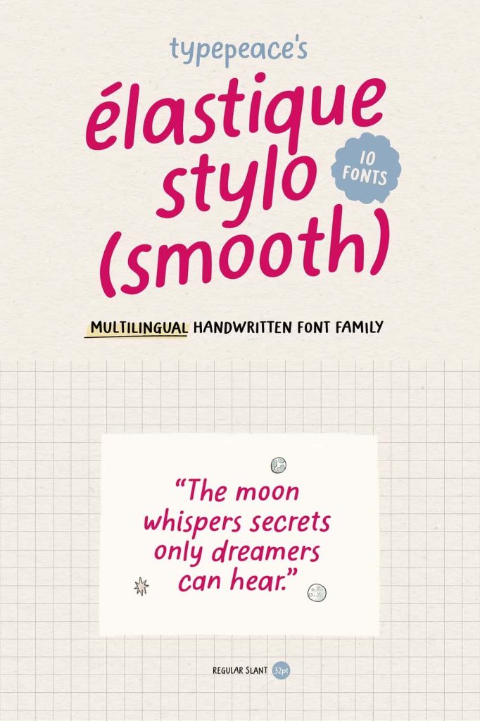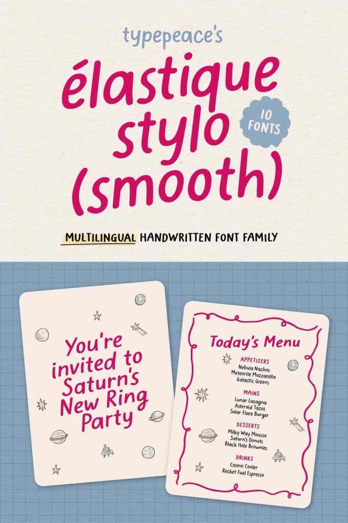 Elastique Stylo Smooth – 10 FontsleastedJanuary 26, 2025Fonts Elastique Stylo Smooth, a sub-family of the Elastique Stylo Font Family Download