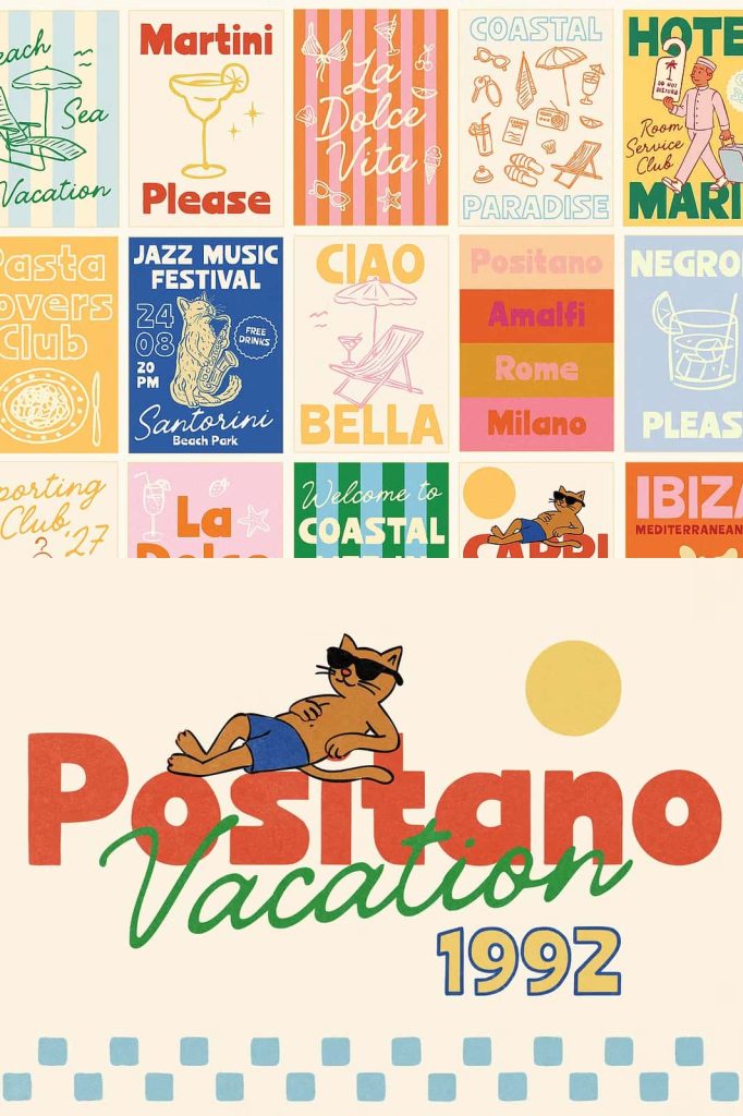 Vacances Poster Club â Handwritten Vintage Font for Posters (+ Illustrations) đĩđđĒŠ This is what happens when vintage typography meets modern design needs â a font family inspired by retro poster design