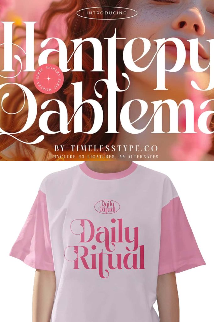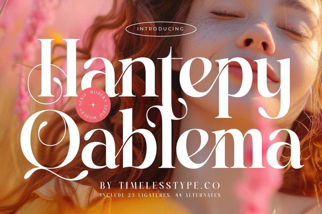 Hantepy Qablema – Modern Serif Font , from Timelesstype.Co , Suitable for any projects such as: logos, branding projects, homeware designs, product packaging, mugs, quotes, posters, shopping bags, t-shirts, book covers, name card, invitation cards, greeting cards, label, photography, watermark, special events, and all your other luxury and beautiful projects that need a Luxury Serif taste.