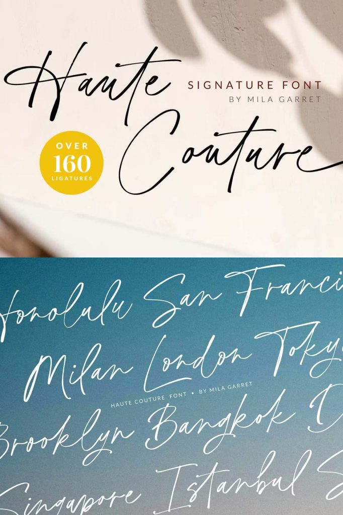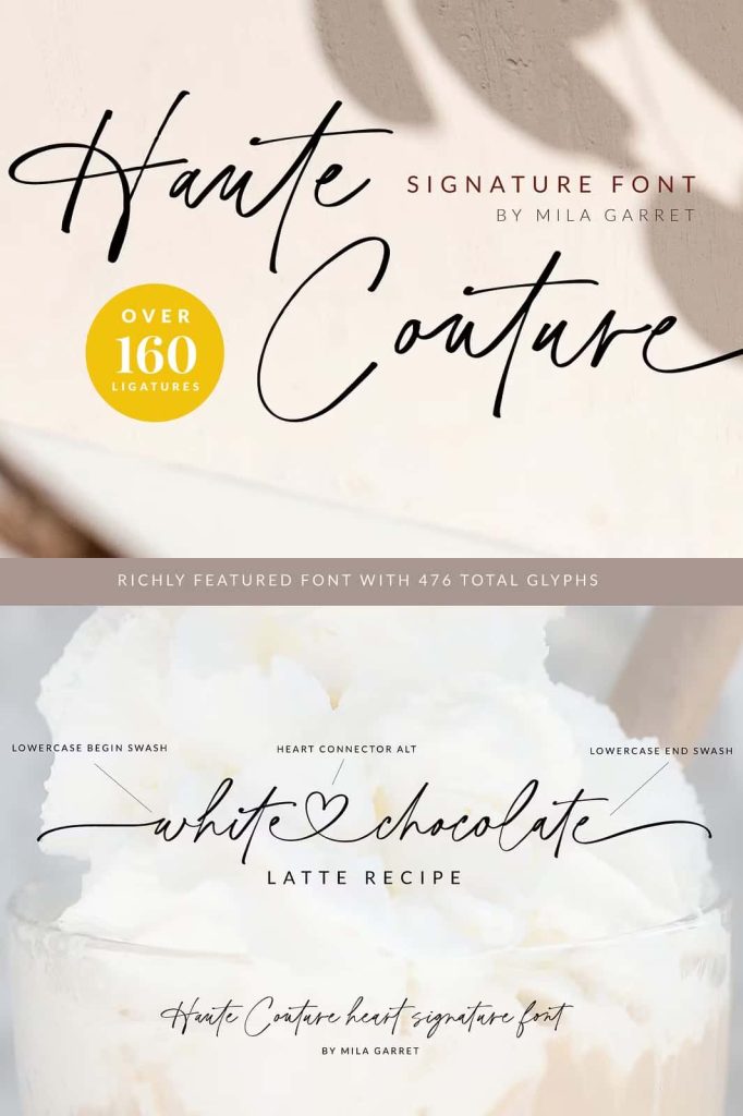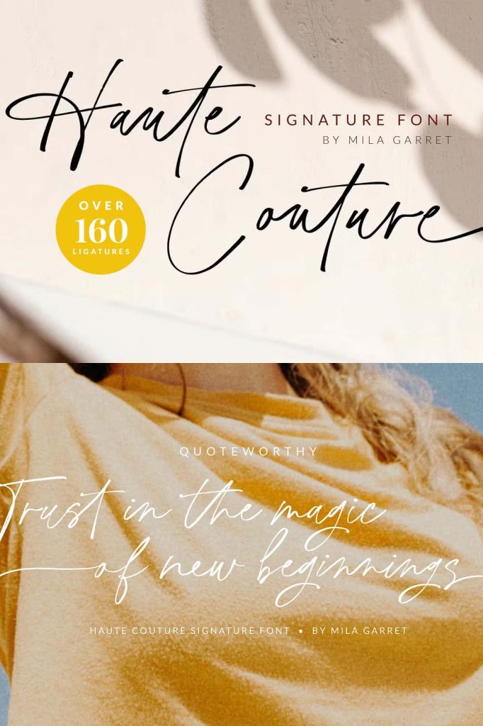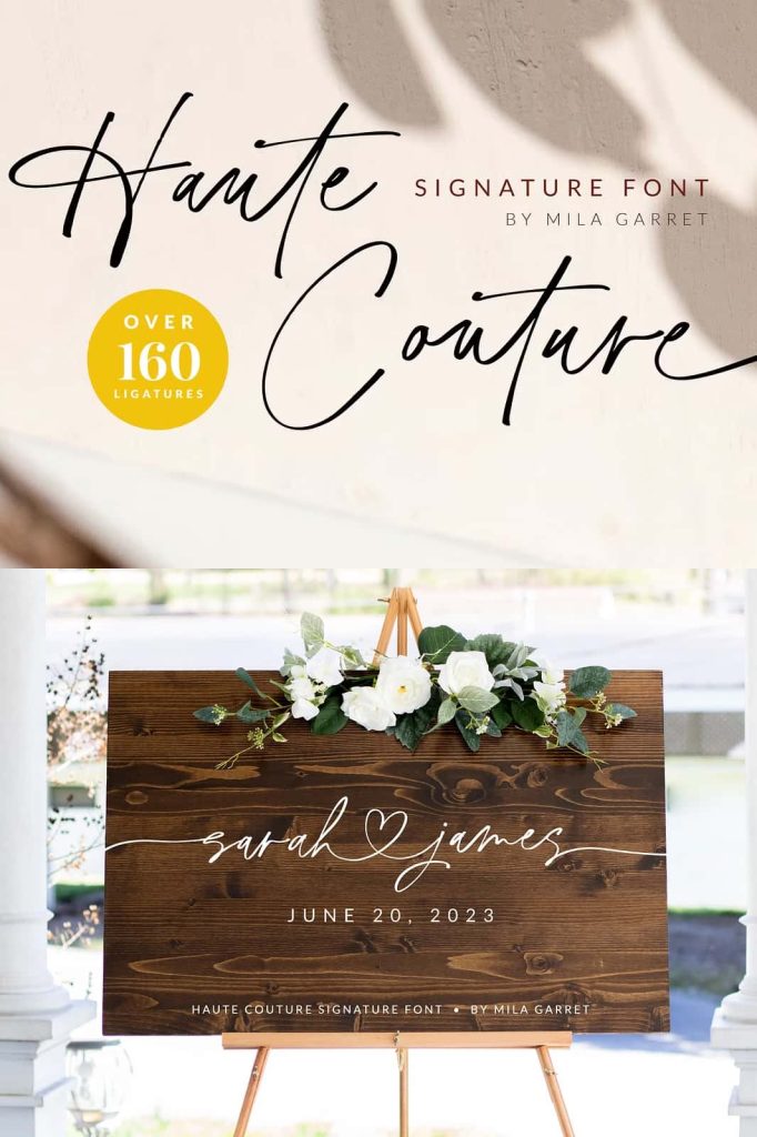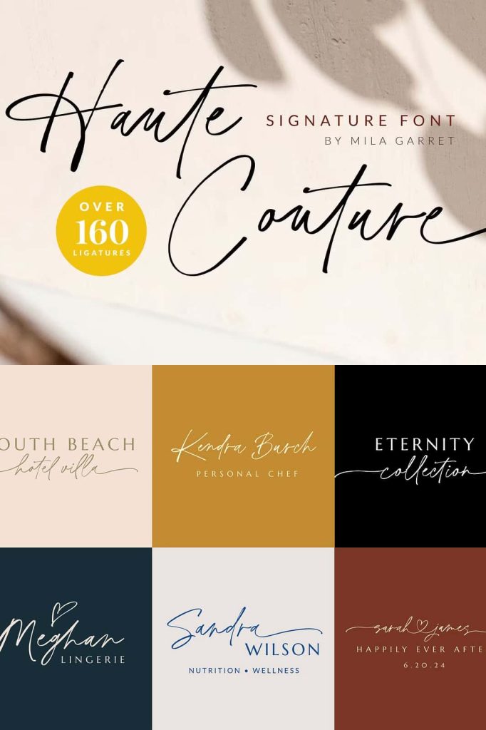 Haute Couture is a handwritten signature font with a calligraphy flair, ideal for creating handwritten-style logos, wedding stationery, photographer watermarks logos, modern websites, and more.