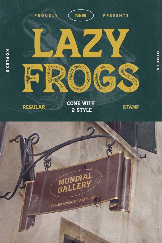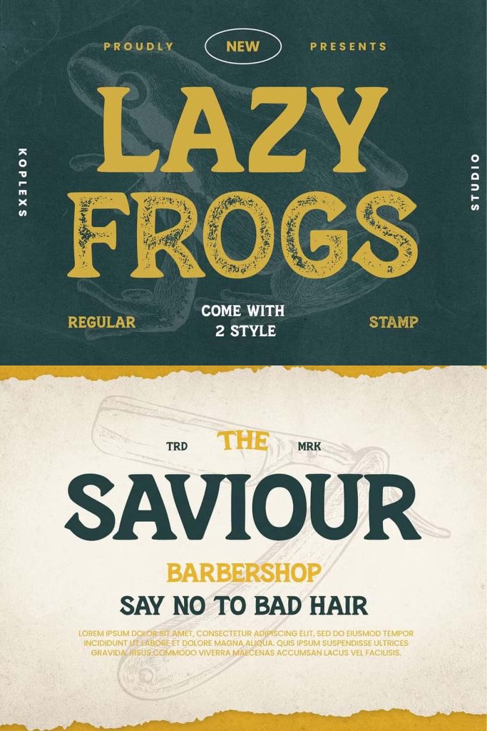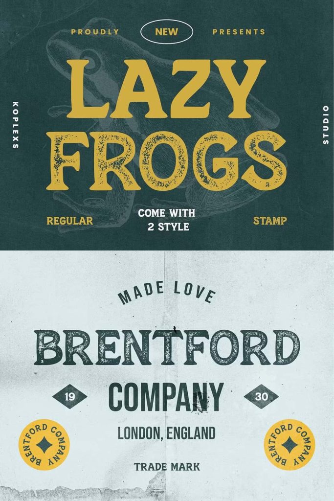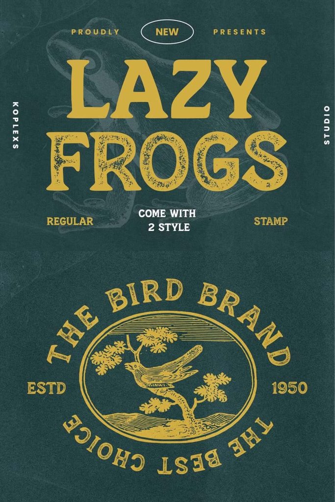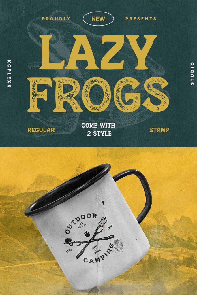 Lazy Frogs Font. the perfect choice to infuse your designs with a sense of nostalgia and uniqueness. Featuring two captivating styles, regular and stamp, this font exudes the timeless character and charm of the vintage era.