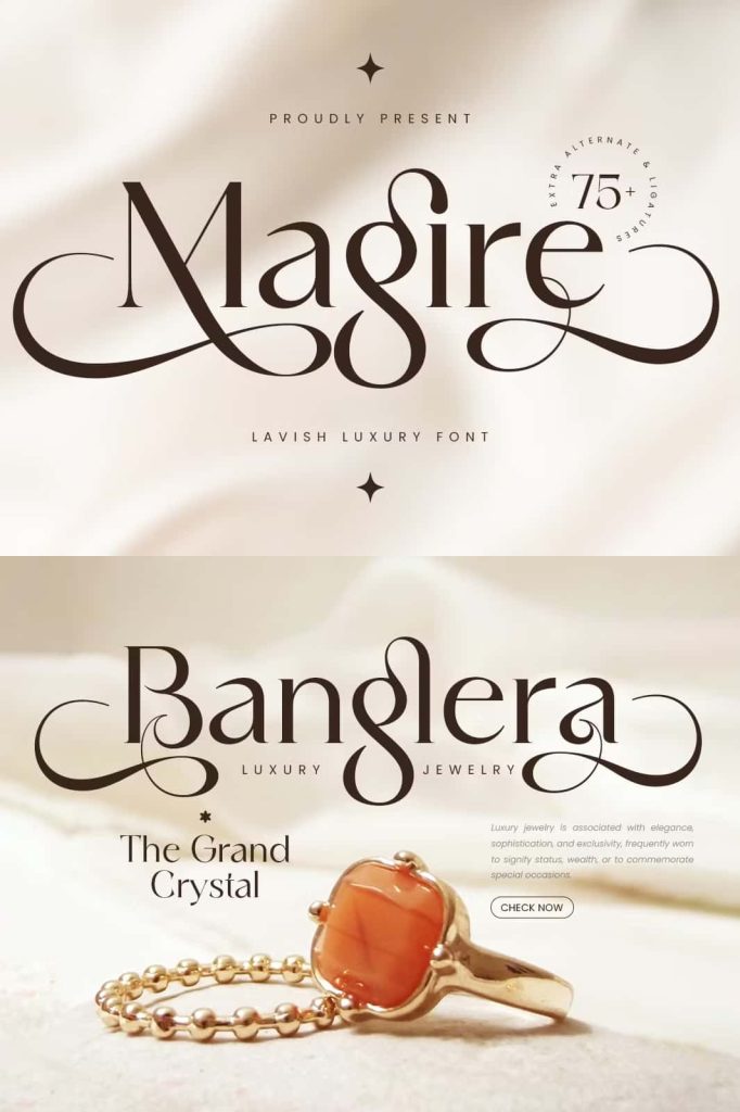 Magire – Lavish Luxury FontleastedJanuary 20, 2025Fonts Magire is a font designed for those who seek sophistication and elegance in every detail. Download