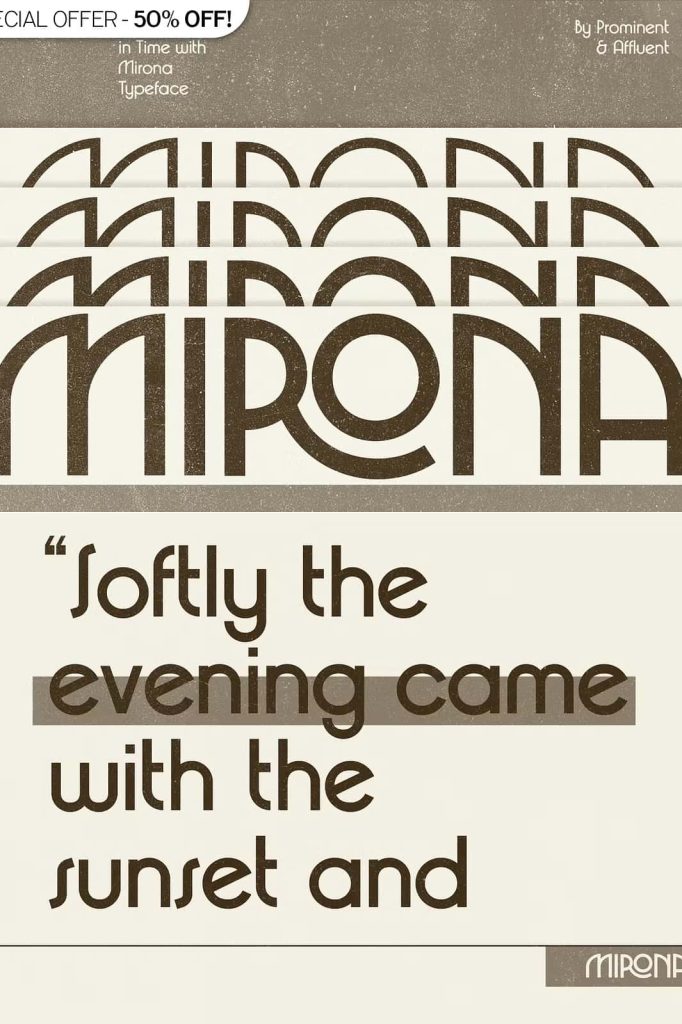 Mirona – Display Retro FontleastedJuly 19, 2025Fonts Mirona Font effortlessly captures the essence of the 1970s, evoking a sense of nostalgia and vintage coolness. Download