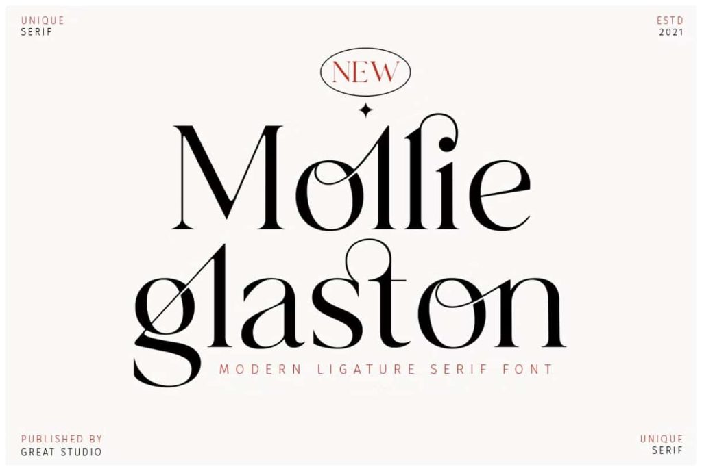 Mollie Glaston-Modern Ligature SerifleastedJune 11, 2025Fonts Mollie Glaston is a modern serif font with a unique ligature style Download
