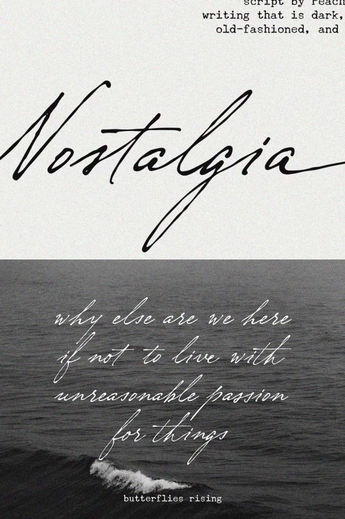 Nostalgia is not just another decorative font—it’s a storytelling tool. Every curve and line was created to evoke emotion, elegance, and authenticity. It invites viewers to slow down and appreciate the artistry of typography, just as they would admire the details of a hand-painted sign or a vintage poster. With its blend of dark tones and timeless structure, Nostalgia gives designers a way to express depth, history, and personality in every word.