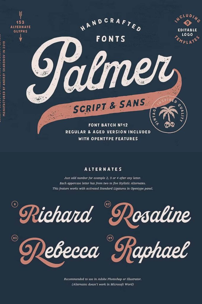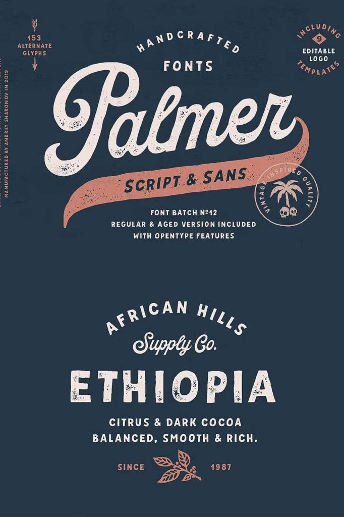 Palmer Script & Sans + Logo TemplateleastedMarch 24, 2025Fonts This pair was inspired by the spirit of the past, when manual labor was common Download