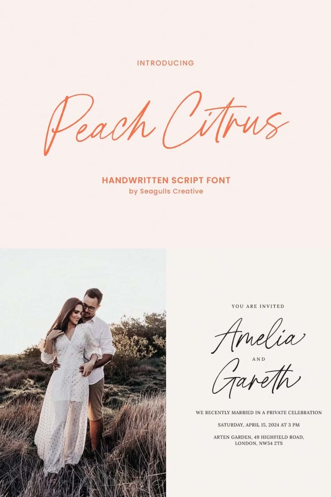 Peach Citrus also excels in event-related designs. From wedding invitations to personal stationery, this font offers a soft and graceful presence that suits formal and casual occasions. Its charming style works beautifully for envelope addressing, name cards, menus, save-the-date cards, thank-you notes, and handcrafted paper goods. Designers who aim to convey warmth and sophistication will find Peach Citrus indispensable for building emotional and memorable event materials.