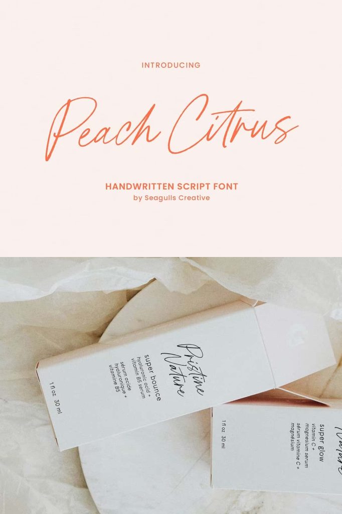 Product packaging plays a crucial role in capturing consumer attention, and Peach Citrus offers the right balance of charm and sophistication to achieve that goal. Its legible and visually appealing letterforms enhance labels, jars, boxes, bottles, pouches, and artisan product lines. Whether you design packaging for cosmetics, food items, beverages, handmade goods, or boutique products, Peach Citrus helps your layout appear polished and distinctive. It introduces an inviting personality that encourages customers to explore the product further.