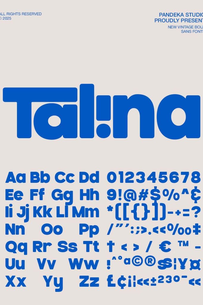 If you want a font that brings energy, personality, and clarity to your work, Talina is a powerful choice. Its playful nature and versatile application make it a valuable addition to any design toolkit, helping you create memorable and visually appealing projects with ease.