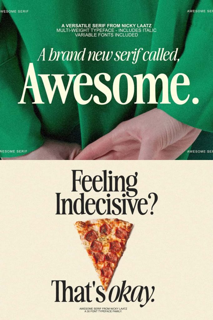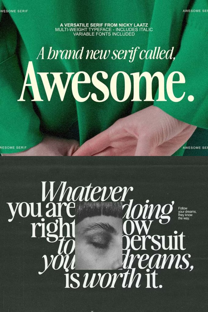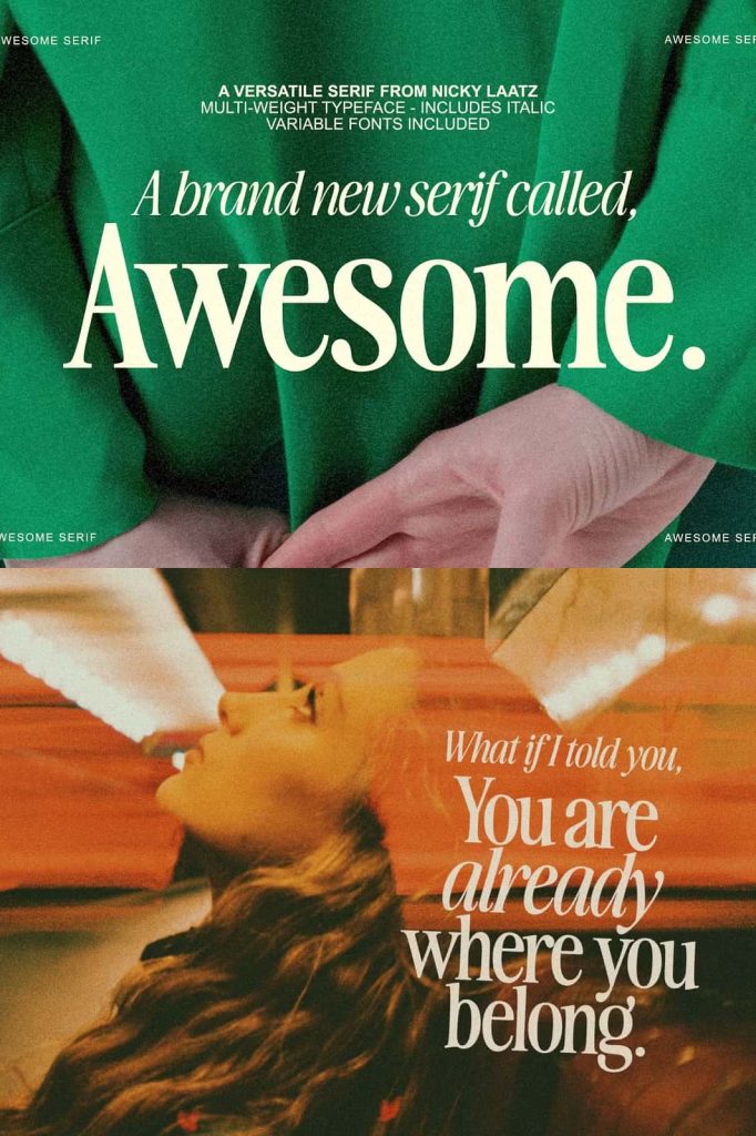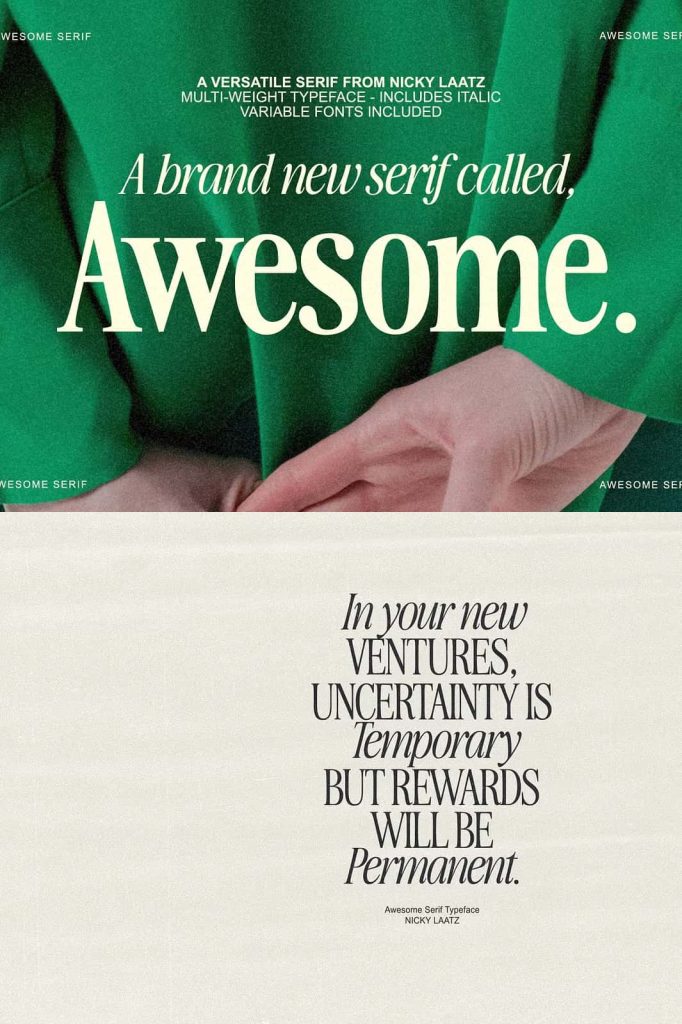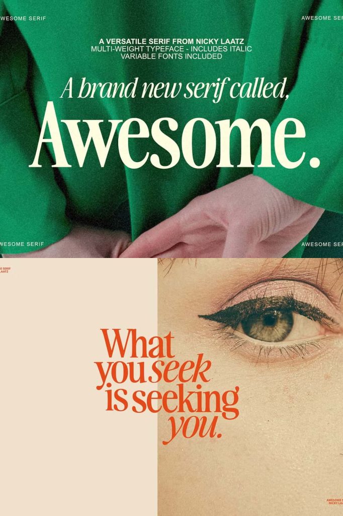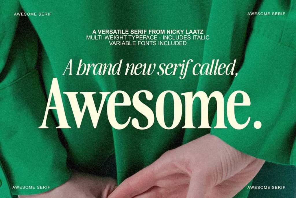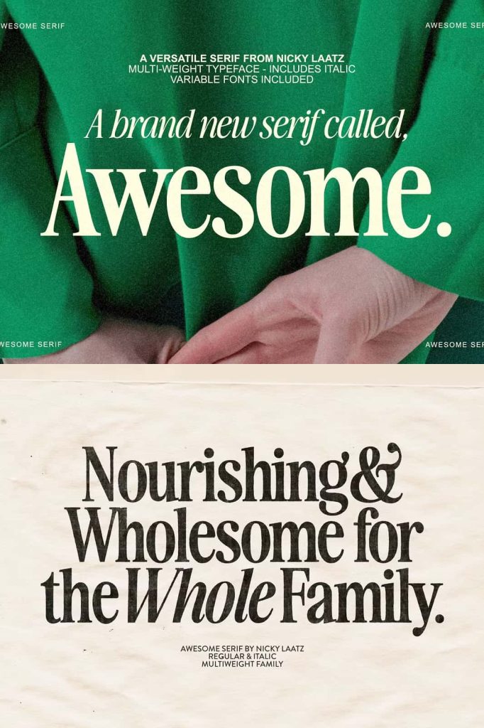 Awesome Serif is stylish, but with a retro edge. It’s was created to be super versatile – it can morph into delicate sophisticated projects – or bold edgy retro designs. Take your pick 🙂 Use the Type tester below to type out your text and take it for a spin!