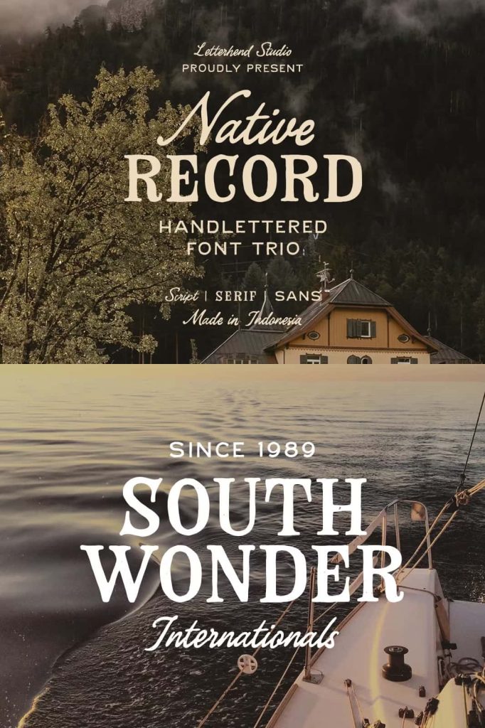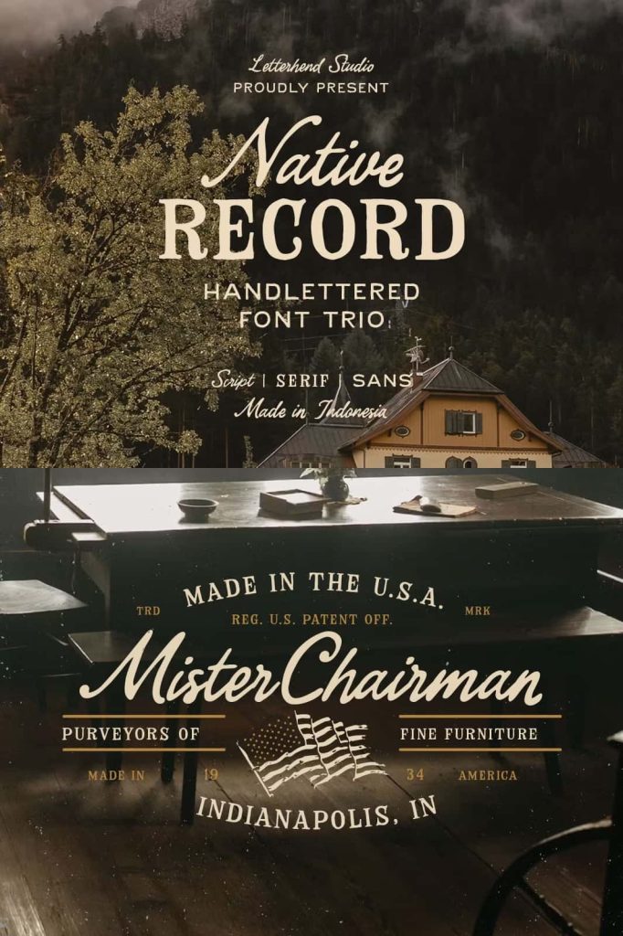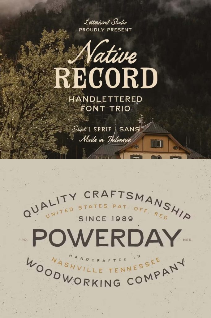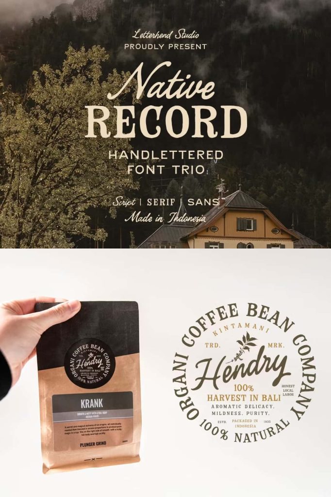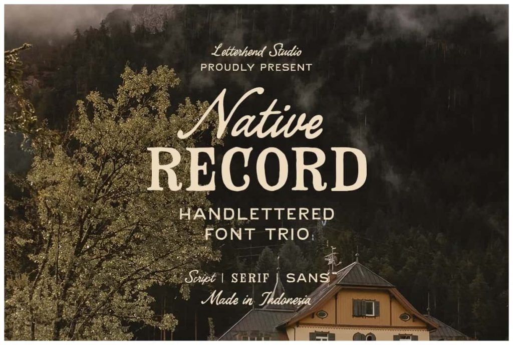 The Native Record font trio is a true country classic, bringing the warmth of handcrafted lettering and the charm of old-time typography right to your designs. It comes witj sans, serif and script. Together, these styles create a versatile and dynamic combination that enhances both traditional and contemporary design projects.